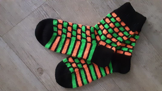 Wir üben das Maschen aufnehmen, rechte und linke Maschen,